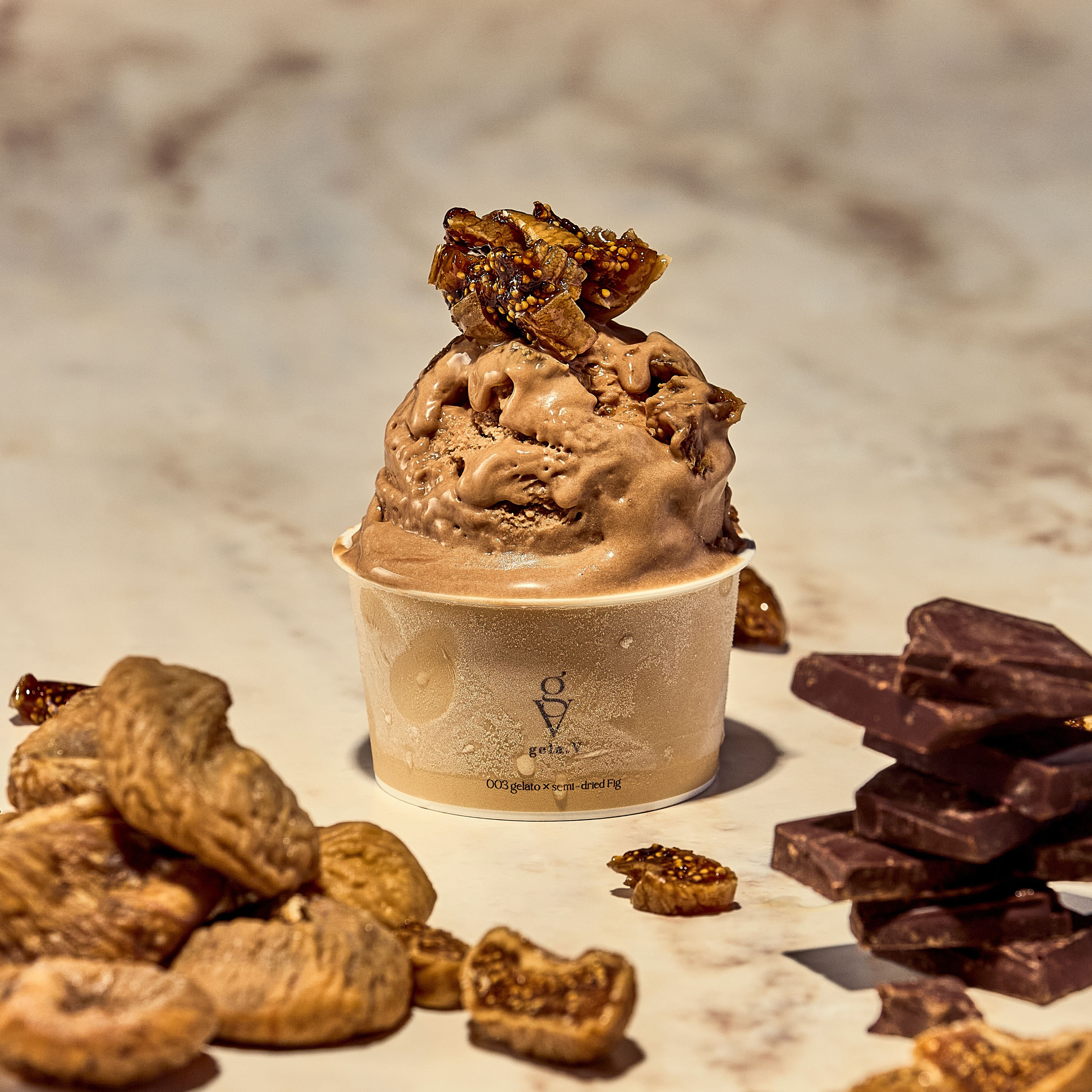 003のジェラートにアガベシロップに漬け込んだ食物繊維たっぷりのセミドライフィグをトッピング。