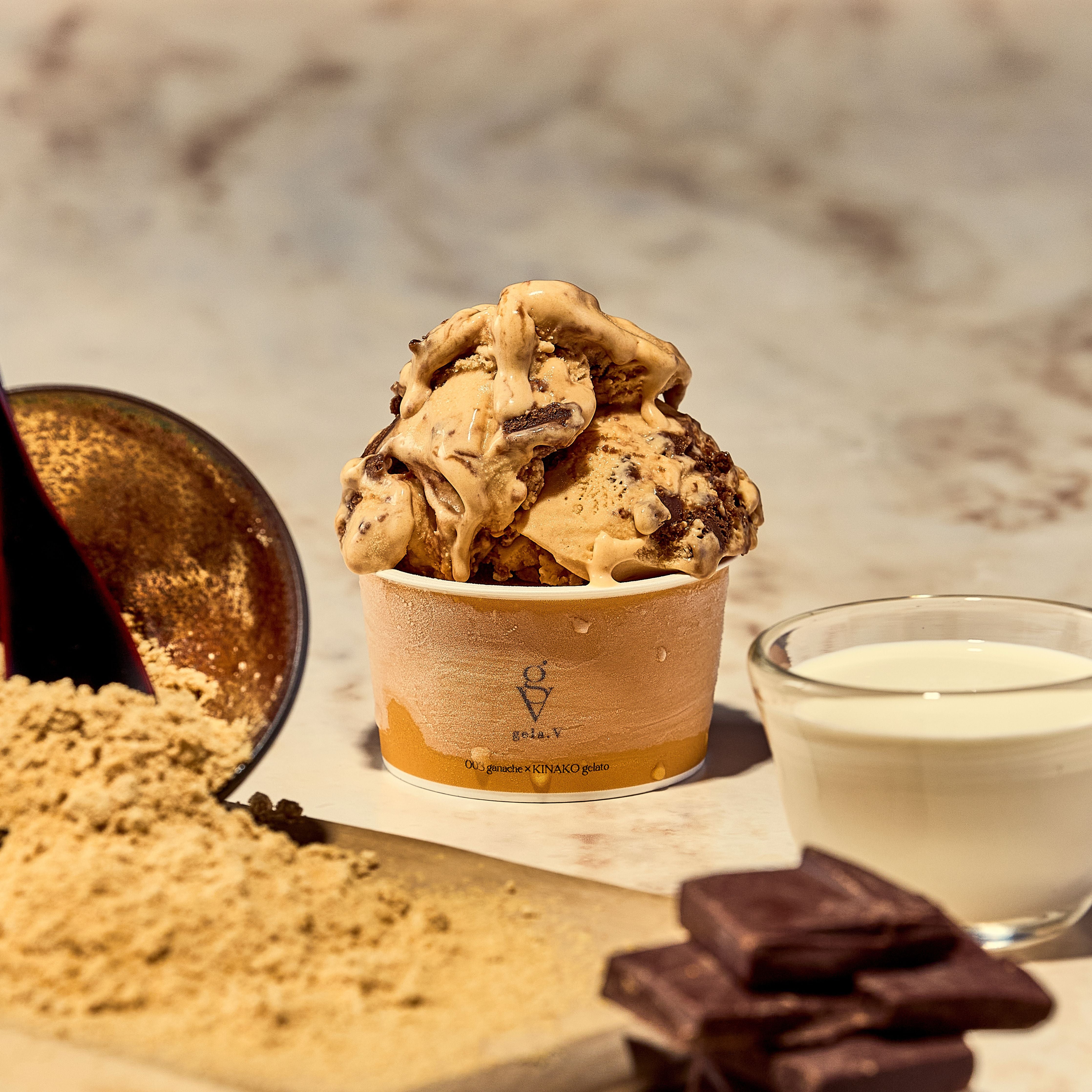 003の優しくマイルドな味わいを引き出したガナッシュと和風テイストのきな粉のジェラート。